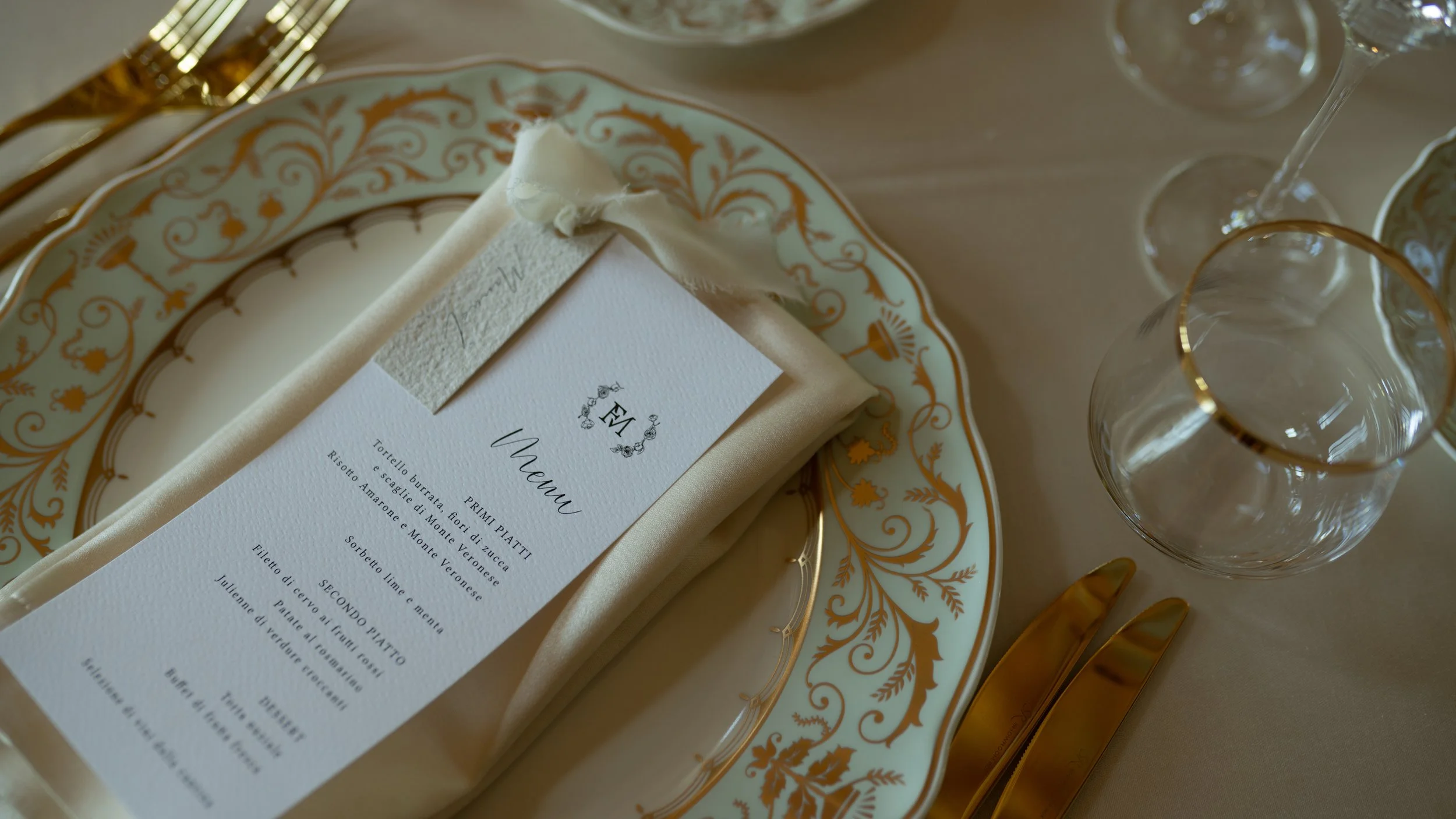 menu in POKARTA avorio con segnaposto in POKARTA verde menta