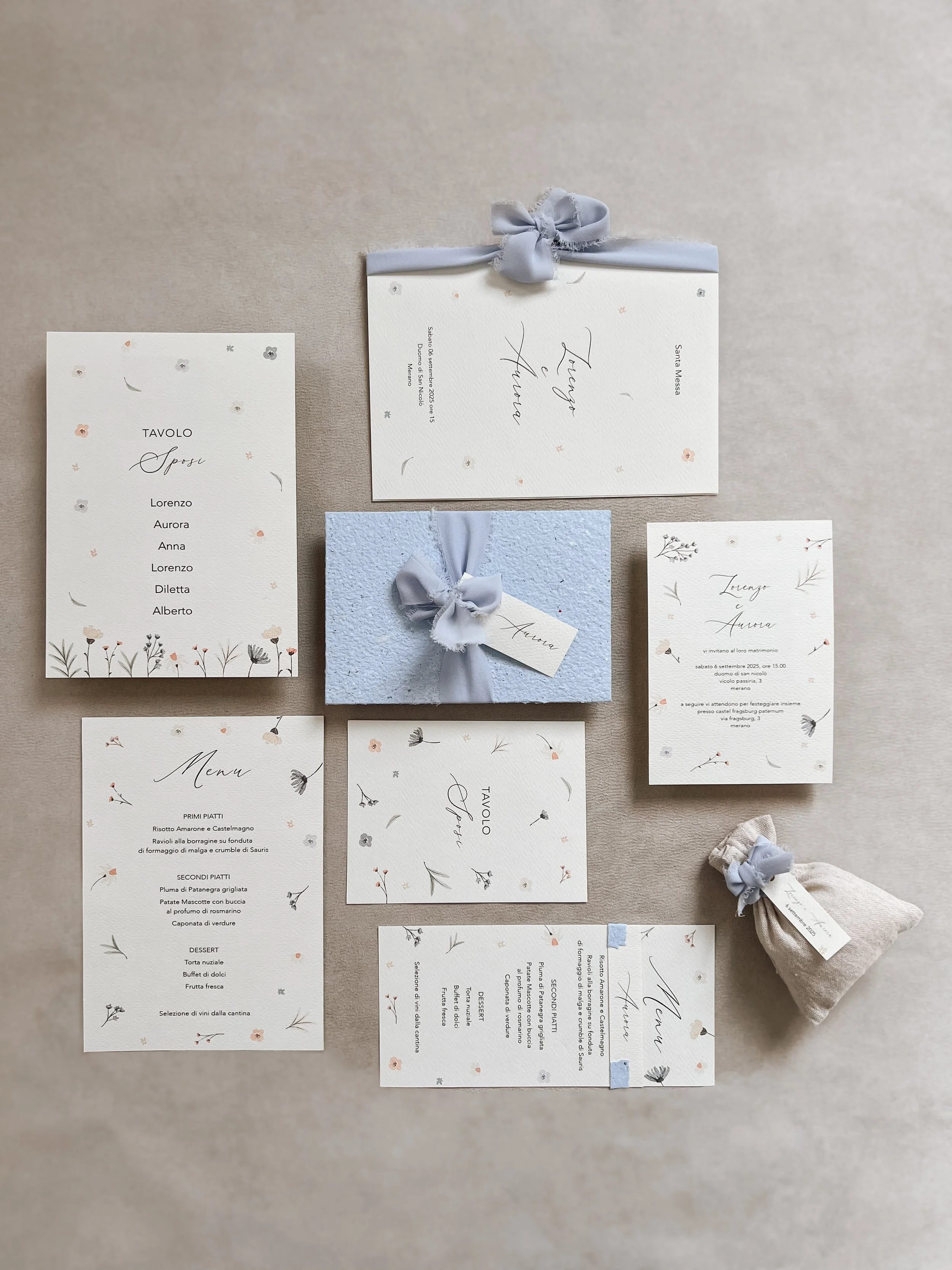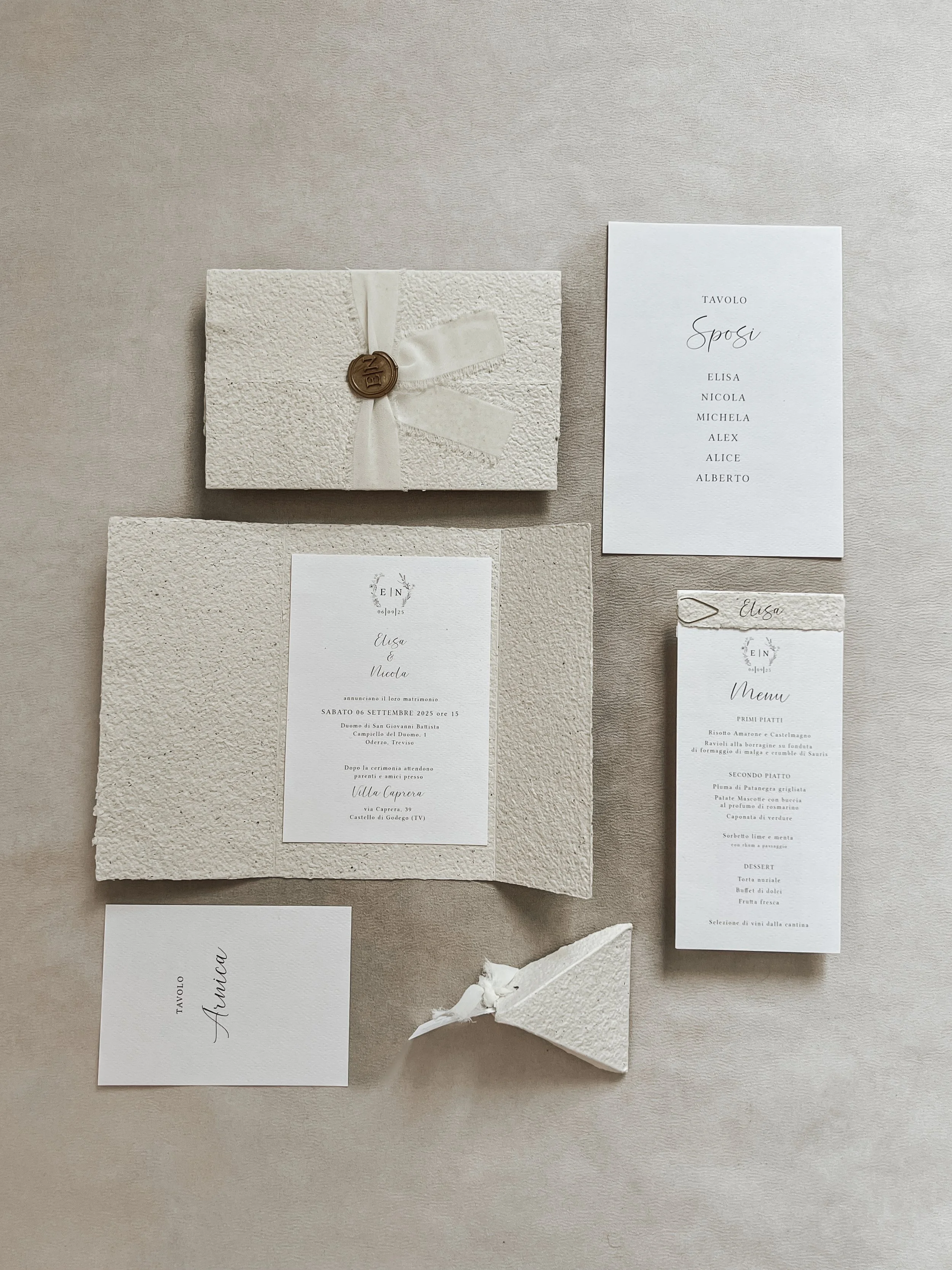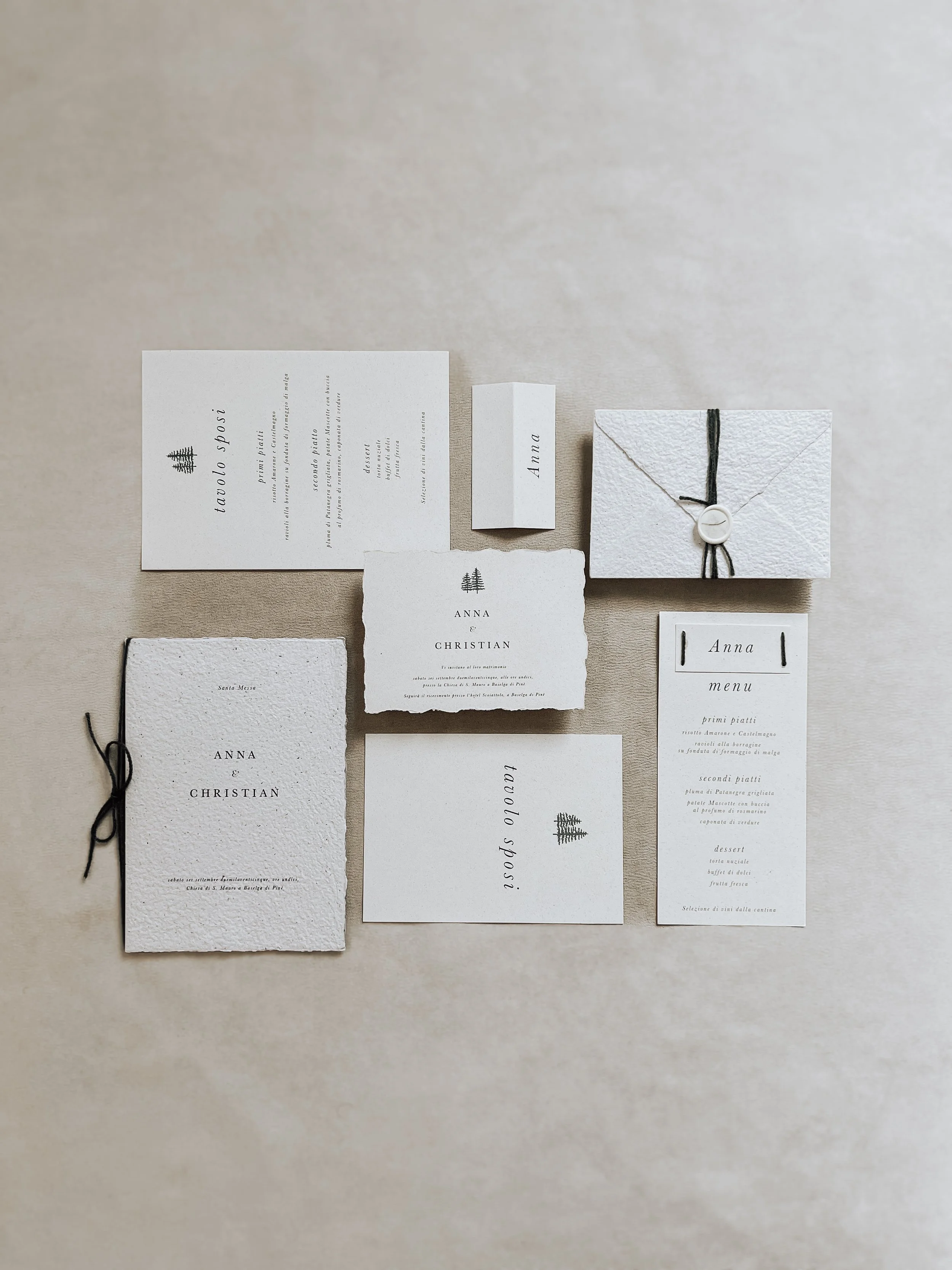 La tipologia di carta, la forma della busta e dei vari elementi, sono tutti fattori da decidere insieme. Il "modello" si riferisce esclusivamente alla parte grafica, non alla scelta del materiale.